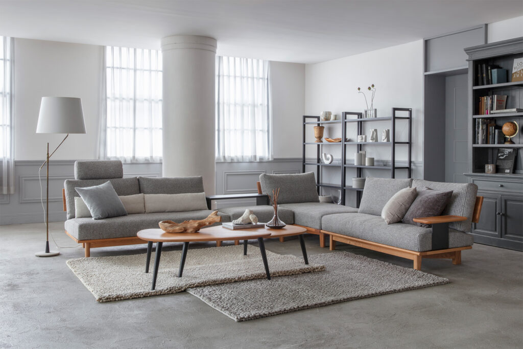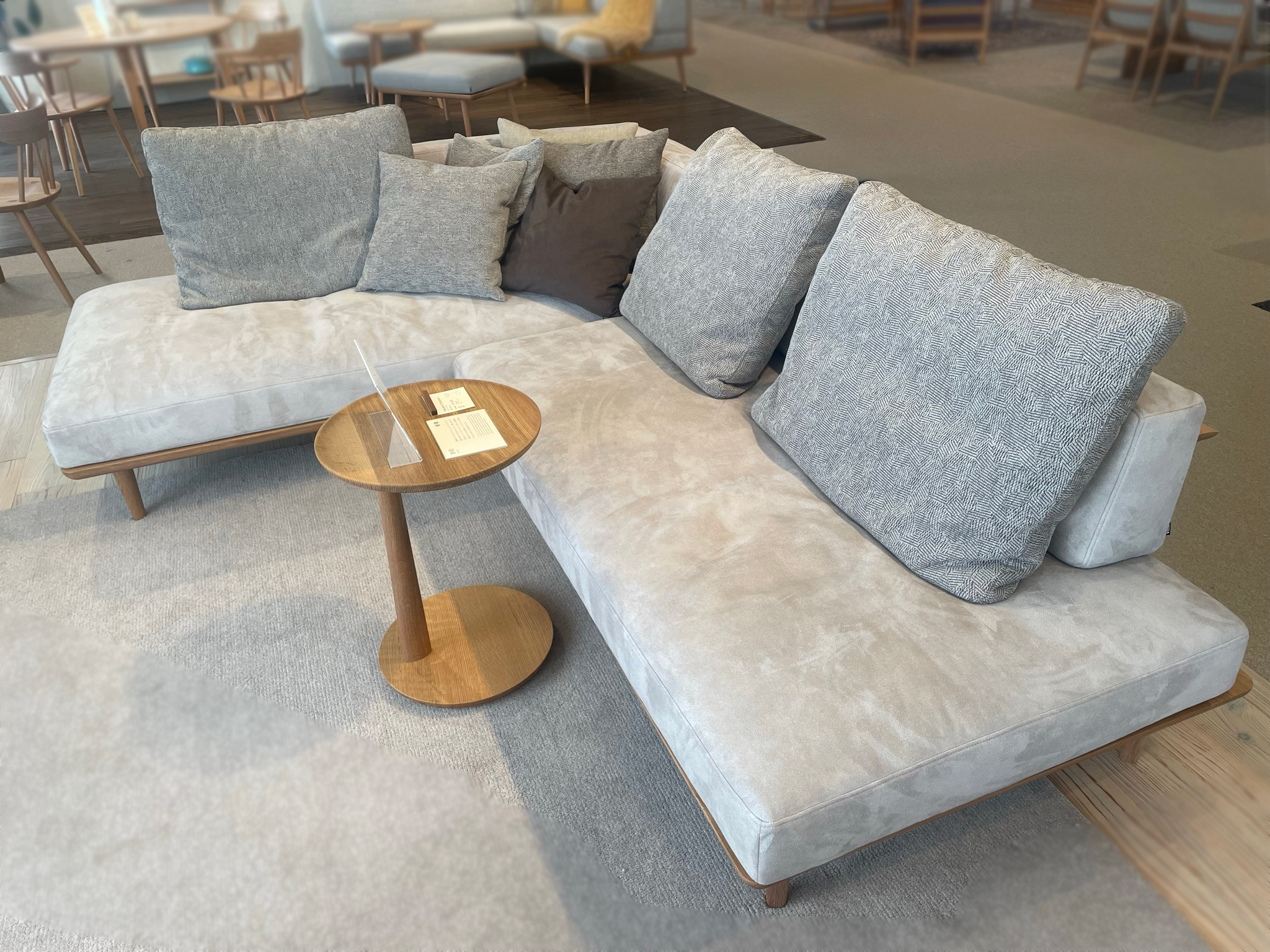 飛騨産業の静穏は、カウチとソファを自由に組み合わせ、お部屋や自分に合ったくつろぎのレイアウトが組みやすいシステムソファです。長さが出せるため、足を伸ばしたり寝転ぶのはもちろん、斜めに腰掛けたりと体勢を変えながらリラックスしやすいのが特徴。状況や気分に合わせていろんな姿勢で使いたい方におすすめです。