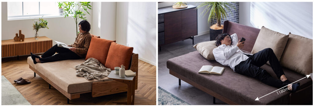 最後に、足を伸ばしやすい国産ソファも紹介します。