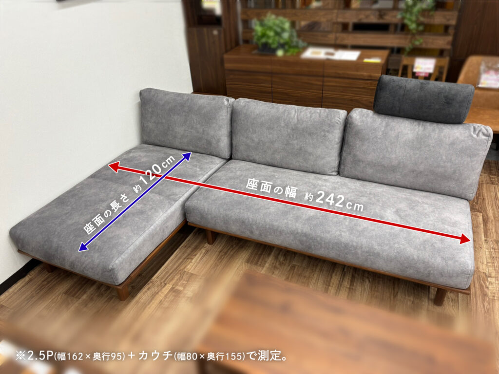 ※2.5P(幅162×奥行95)+カウチ(幅80×奥行155)で測定。