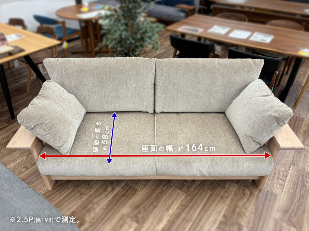 - 座面の幅:約164cm(アームクッションあり 約120cm)
