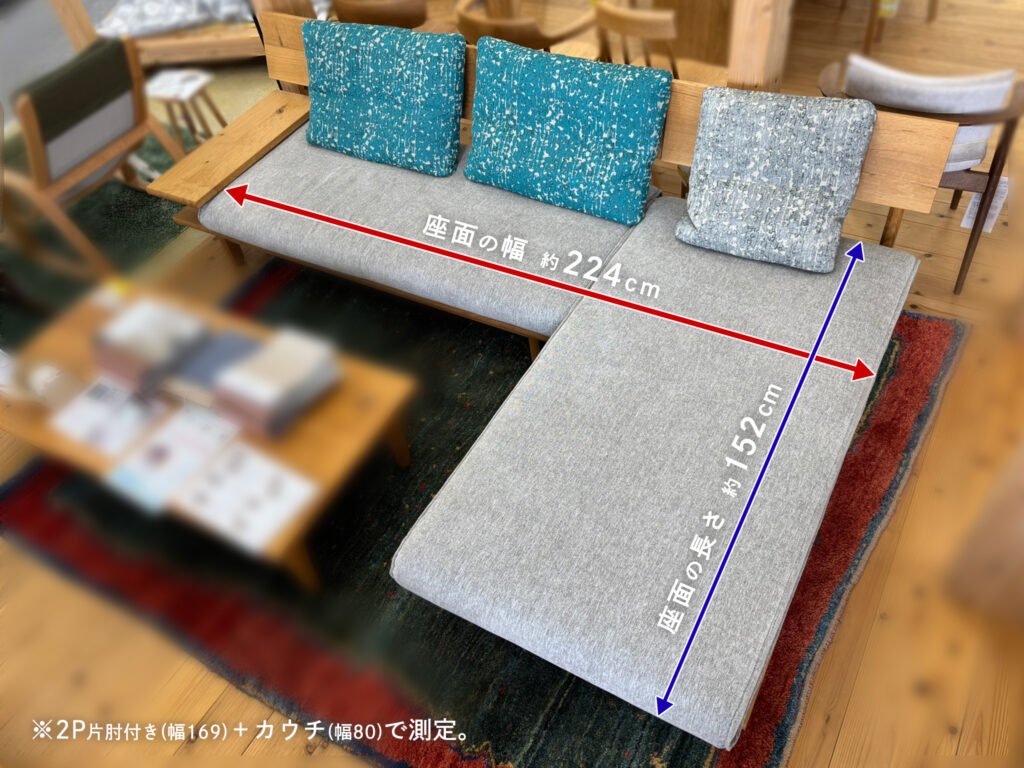 ※2P片肘付き(幅169)+カウチ(幅80)で測定。