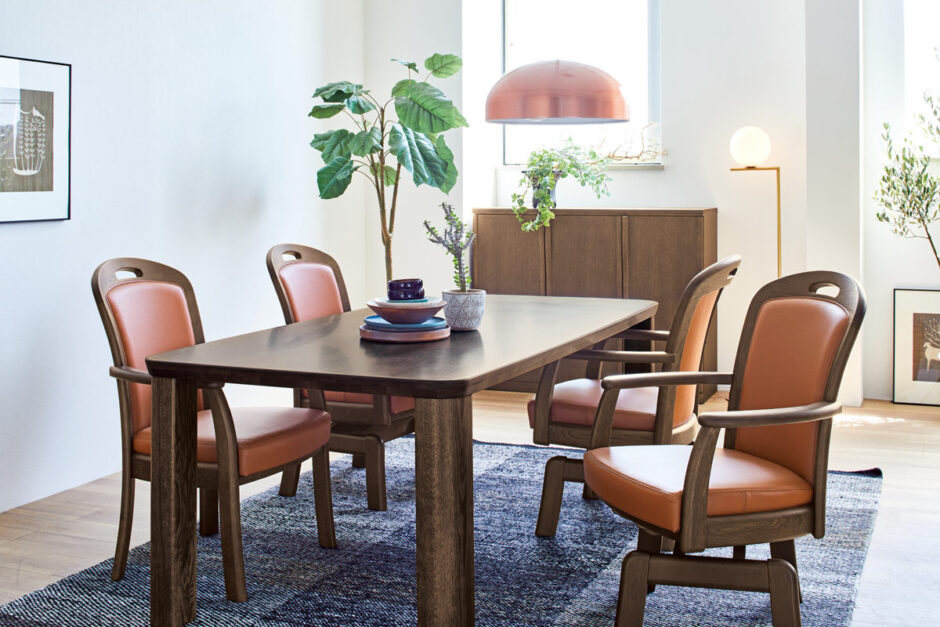 浜本工芸のダイニングテーブルは、木部の耐久性という意味では一生モノといえるレベルです。「結婚したときに買ったテーブルを今も使っている」「孫と一緒に使っています」という声が当店でも珍しくありません。