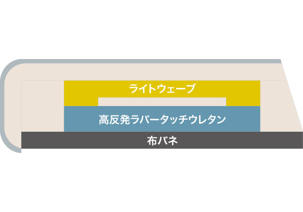 クッションにはライトウェーブ・ウレタン・布バネの3素材を組み合わせており、へたりにくく通気性にも優れた設計です。長年使ってもクッションが戻ってくる、という浜本工芸らしい実用重視のつくりになっています。