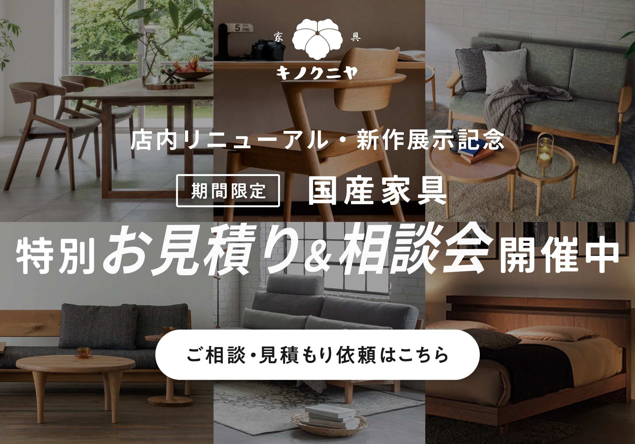 アウトレット品は在庫限りのため、希望の樹種・塗装色・サイズが見つからないことも多いです。「希望通りのものを、できるだけお得に買いたい」という方には、正規品を特別価格でご提案しています。塗装色・張地・サイズのセミオーダーも可能で、5年保証付きの新品です。見積り無料・購入前提でなくてもOKです。