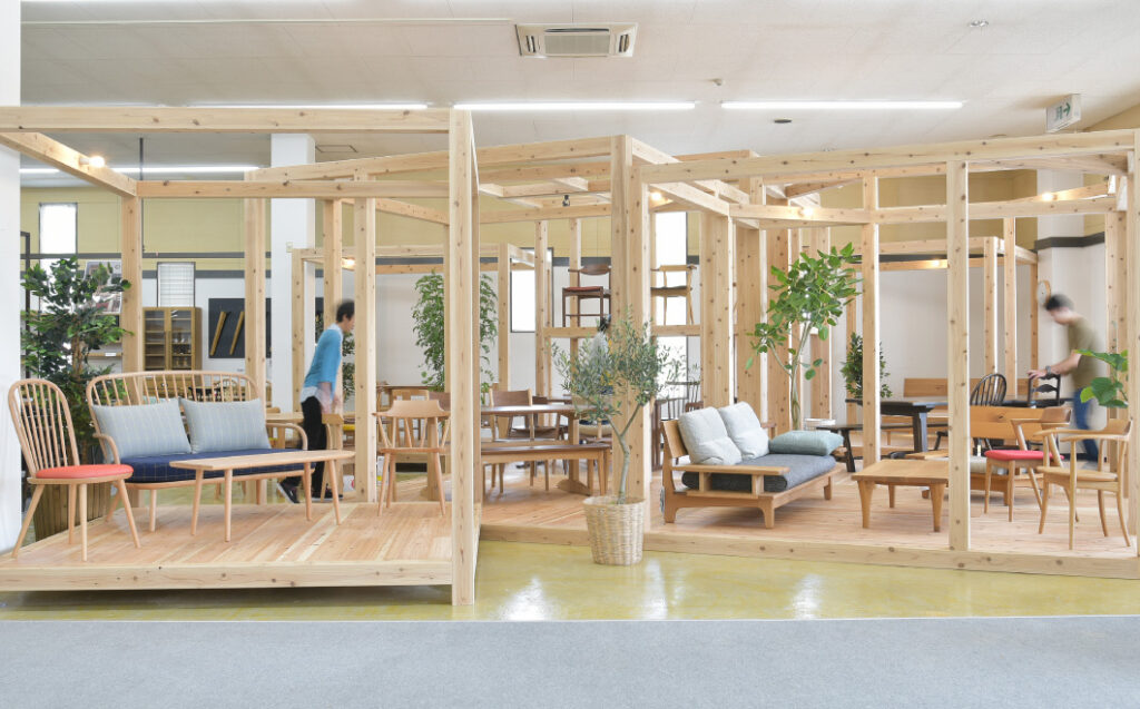 当店は岐阜県飛騨高山で創業60年以上の国産家具専門店です。飛騨産業・ナガノインテリア・浜本工芸・宮崎椅子製作所・イバタインテリアを実機展示しており、実際に座って・触れて確認できる環境を整えています。